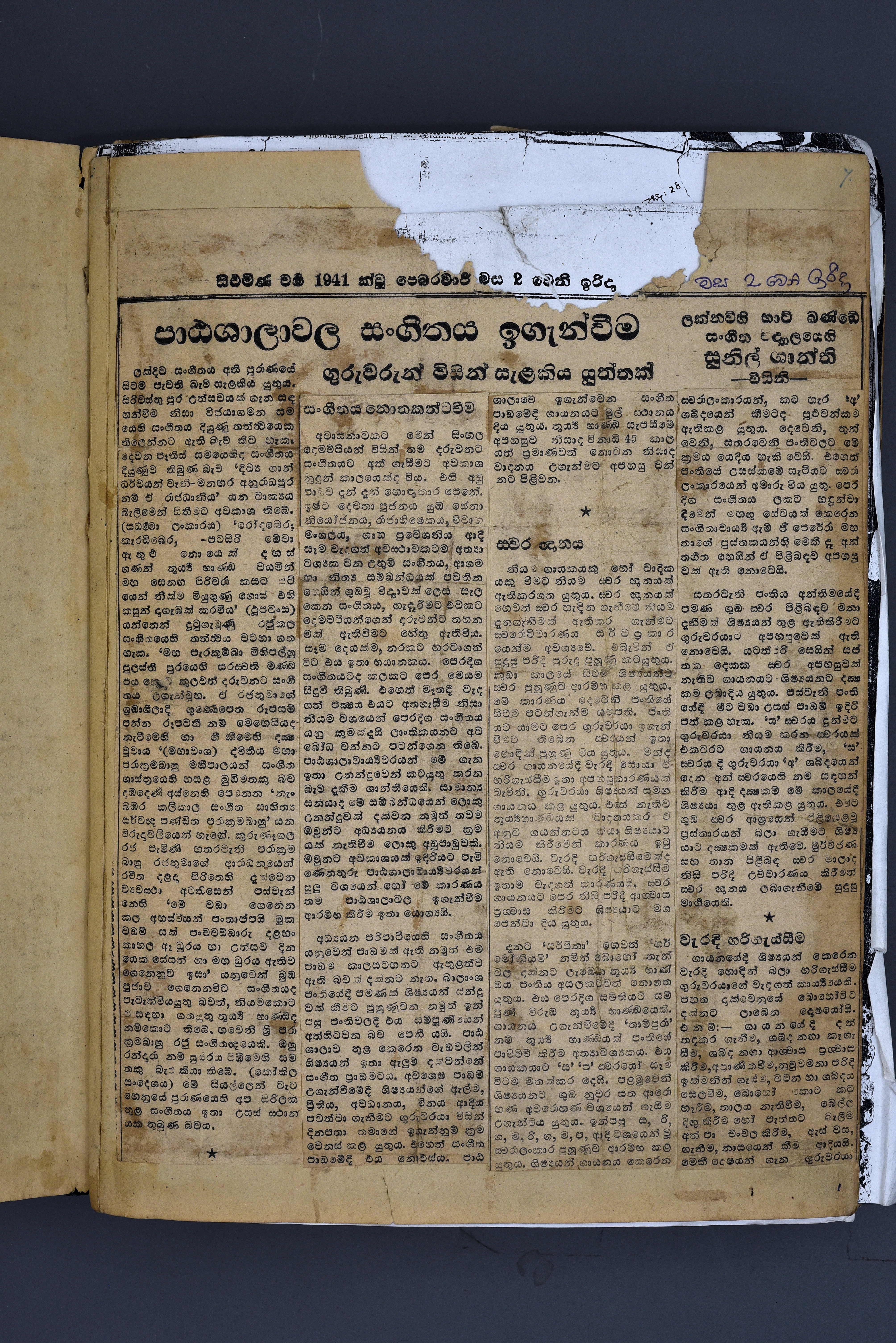 පසුගිය ස්වල්ප කාලය තුළ සංගීත තරඟ, සංගීත ප්‍රදර්ශන, නාට්‍ය ආදිය ඉතා සැලකිල්ලෙන් පැවැත්වුණු බව අපට මතකය. එමෙන්ම සංගීත පංතිද හතු පිපෙන්නාක් මෙන් ත්‍රි සිංහලය පුරා පැතිර ගිය බවද නොරහසෙකි.