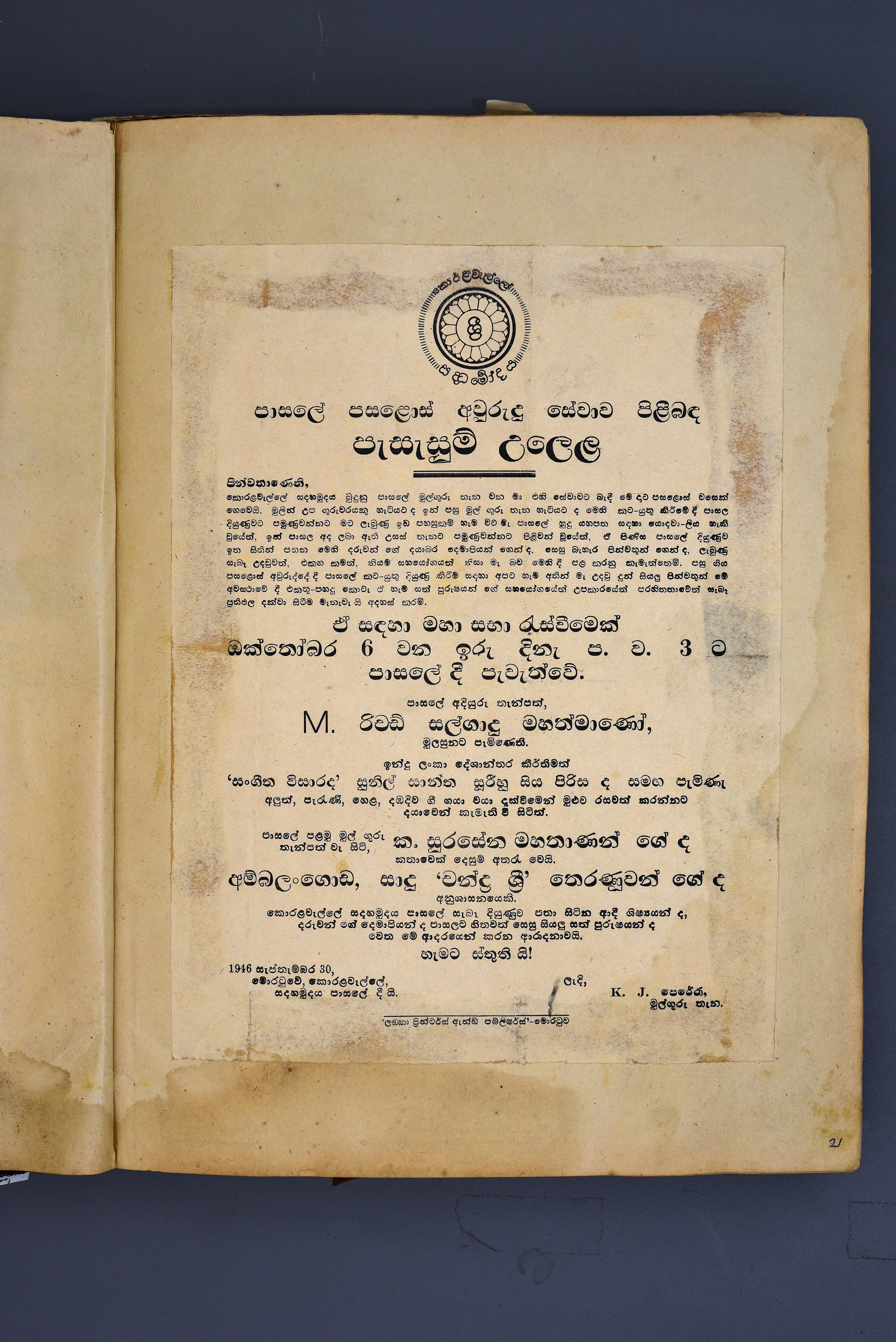 කොරළවැල්ලේ සදහමුදය බුදුනු පාසලේ මුල්ගුරු තැන වන මා එහි සේවාවට බැඳී මේ දාට පසළොස් වසෙක් ගෙවෙයි. මුලින් උප ගුරුවරයකු හැටියට ද ඉන් පසු මුල් ගුරු තැන හැටියට ද මෙහි කට-යුතු කිරීමේ දී පාසල දියුණුවට පමුණුවන්නට මට ලැබුණු ඉඩ පහසුකම් හැම විට මැ පාසලේ හුදු යහපත සඳහා යොදවා-ලිය හැකි වූයේත්, ඉන් පාසල අද ලබා ඇති උසස් තැනට පමුණුවන්නට පිළිවන් වූයේත්, ඒ පිණිස පාසලේ දියුණුව ඉත සිතින් පතන මෙහි දරුවන් ගේ දයාබර දෙමාපියන් ගෙන් ද, සෙසු බැහැර පින්වතුන්ගෙන්ද, ලැබුණු සැබෑ උද වුවත්, එකඟ කමත්, නියම සහයෝගයත් නිසා මැ බව මෙහිදී පළ කරනු කැමැත්තෙමි. පසු ගිය පසළොස් අවුරුද්දේ දී පාසලේ කට-යුතු දියුණු කිරීම සඳහා අපට හැම අතින් මැ උදවු දුන් සියලු පින්වතුන් මේ අවස්ථාවේ දී එකතු-පහදු කොට ඒ හැම් සත් පුරුෂයන් ගේ සහයෝගයේත් උපකාරයෙත් පරහිතතාවේත් සැබෑ ප්රතිඵල දක්වා සිටීම මැනැවැයි අදහස් කරමි.