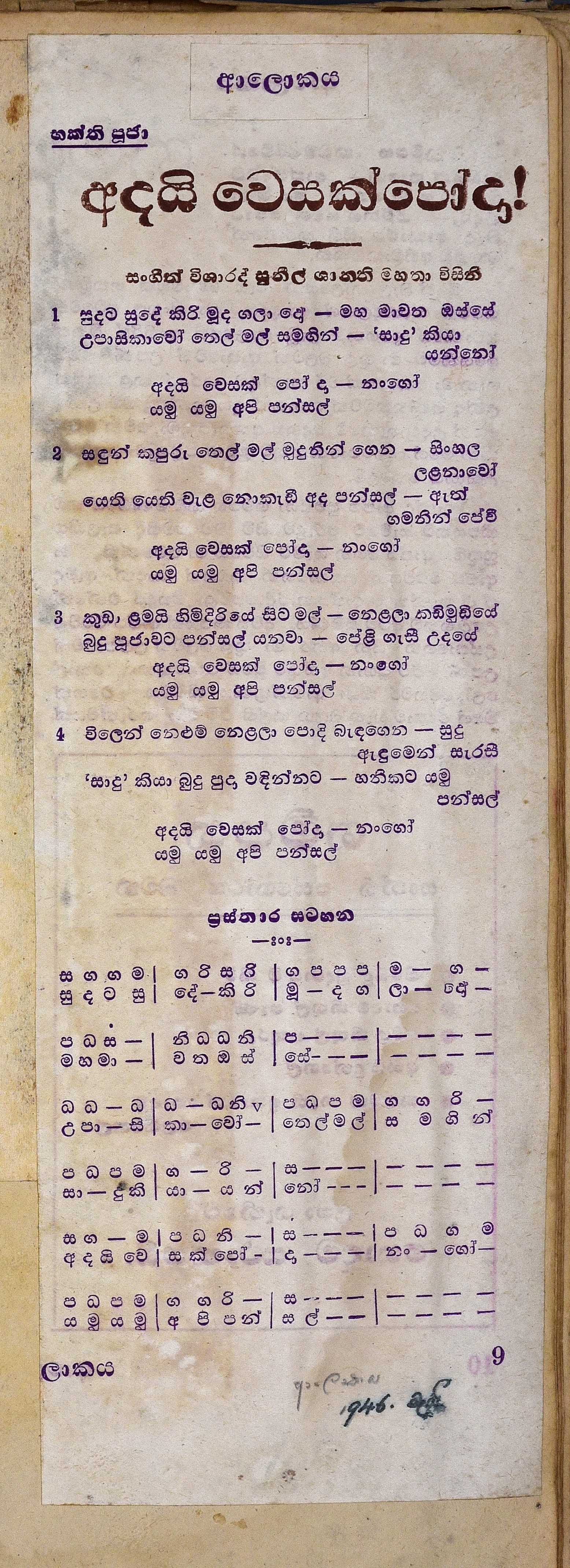 අද අපේ හෙළ සගයුව ඉන්දියානු තැටි ගීයට හිමි වැ පවතී. තැටි ගීයෙහි තනුව පමණක් නො වැ වදන් ද ඇදැ-ගෙනැ බස කෙලෙසා වියරණ මරා අදහසක් නැති ගී බැඳැගන්නා තරම් දුබල අඩියකට අපේ 'සංගීතය' වැටිණ. අන් සෑම ජාතියක් මැ තමන්ගේ මිහිරි ගී, කවි ආදිය සංගීතය හා මුසු කොටැ ගයමින් සාහිත්ය රසය හා සංගීත රසය විඳින්නට මග හදාගෙන සිටින අතරැ අපේ හෙළ කවීන්ගේ පැබැඳුම්, පොතට පමණක් හිමි වෙයි. හෙළ ගී මිහිරට ගයා අසන්නන් කුල් මත් කරන්නට තරම් හැකියාවක් අපේ ගයුවනට නැති වීම ලොකු අඩුවකි. තනුව අනුවැ අදහස යෙදේද? අදහස අනුවැ තනුව යෙදේ ද යනු තව මැත් ඔවුනට විසඳා ගත නො හැකි වැ ඇති මුල් වනුයේ පැබැඳුමයි. එහි අදහස අනුවැ තනුව යෙදෙයි. එහෙත් අප අතරැ පැතිරැ පවත්නේ එහි ඉදිරි පැත්ත යි. තනුව ඇසූ පමණින් අසවල් ජාතිකයා ගේ සංගීතය යැයි හඳුනා ගත හැකි පරිදි සෑම සංගීතයක් මැ හැඩ ගැසී පවතී. යුරෝපා සංගීතය එක වරැ මැ අපට හඳුනා ගත හැකි යැ. හවායි දූවේ සංගීතය අමුතු මැ එකෙකි. ජපනුන්ගේ තවත් පිළිවෙළෙකි. ඉන්දියානු කන්නඩි සංගීතයේ ද හින්දුස්තාන සංගීතයේද ලොකු වෙනසෙකි. වංග සංගීතය මේ සියල්ලට මැ වෙනසි. මෙ ලෙසින් එක එක ජාතිකයාට වෙසෙස් වූසංගීතයන් ලොවැ පහළ වැ පවත්නා අතරැ පර ගැති හෙළයා අනුන් පස්සේ ගොස් හිඟා-ගත් දෙයින් හත් මාළුවක් තැනීමට පුරුදු වැ සිටියි. අහෝ, මේ ගැති කම කවර දා කෙළවර වේද !