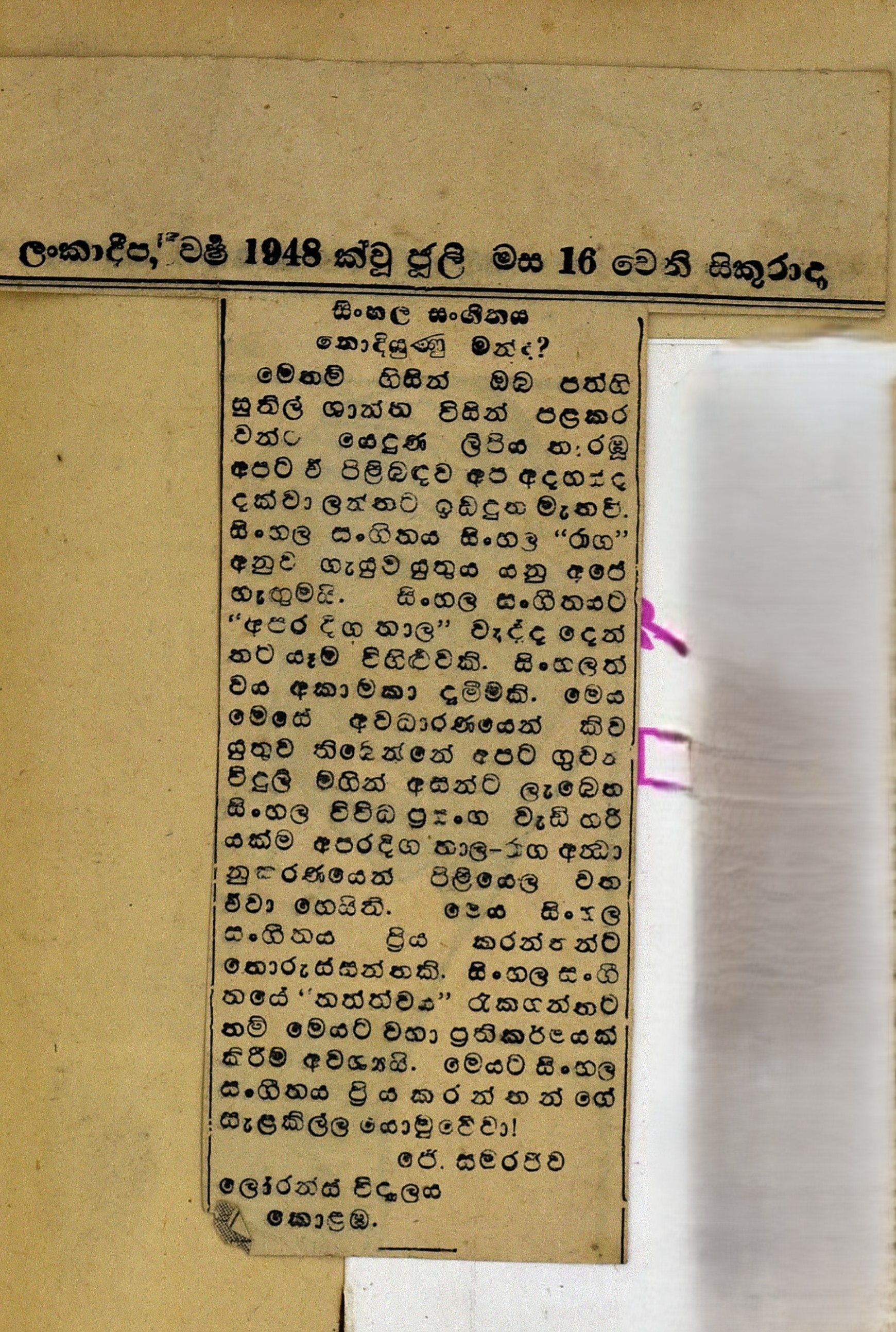 ලංකාදීප, වර්ෂ 1948 ක්වූ ජූලි මස 16 වෙනි සිකුරාදා