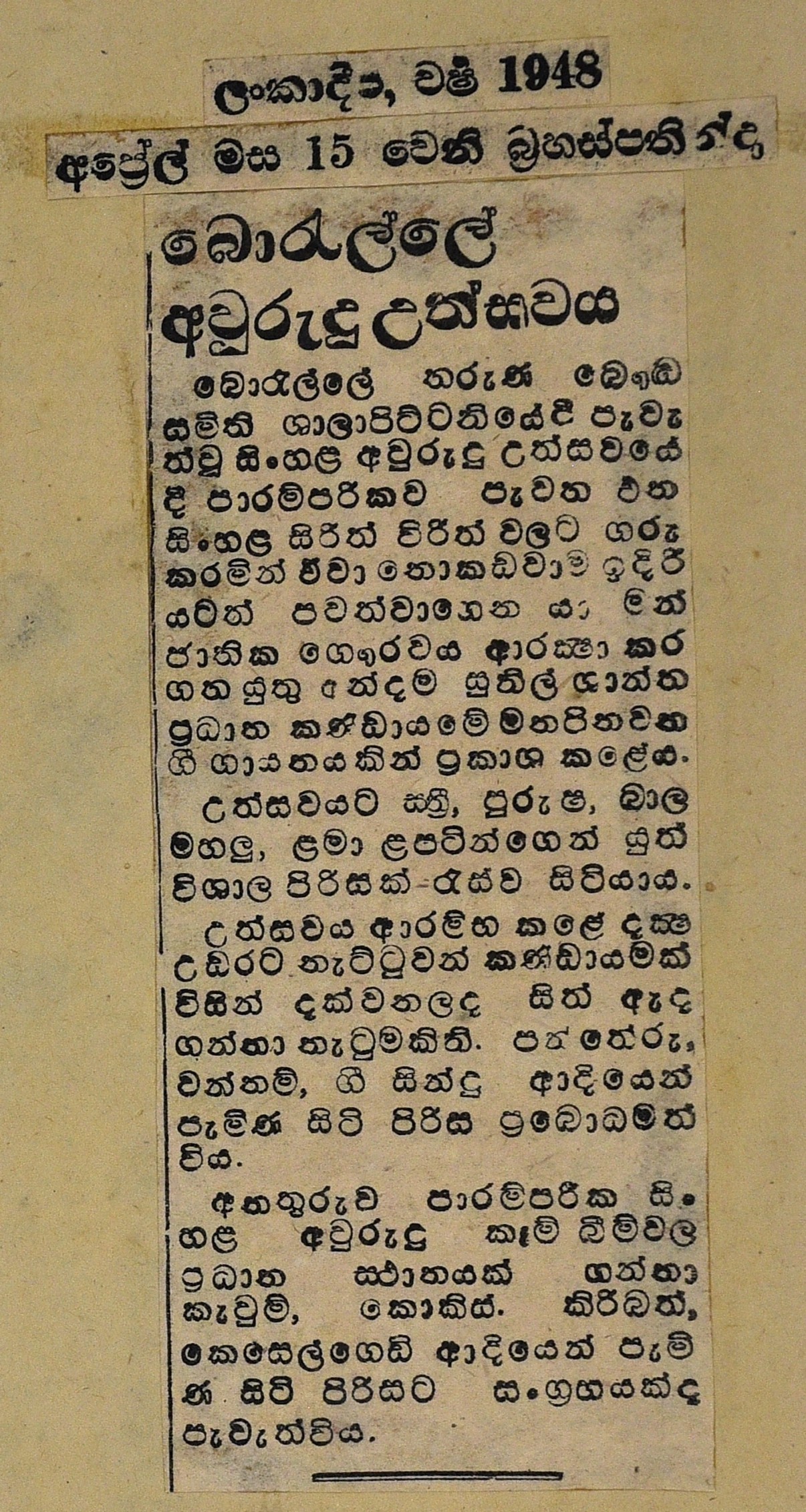 බොරැල්ලේ තරුණ බෞද්ධ සමිති ශාලා පිට්ටනියේදී පැවැත්වූ සිංහල අවුරුදු උත්සවයේ දී පාරම්පරිකව පැවත එන සිංහල සිරිත් විරිත් වලට ගරු කරමින් ඒවා නොකඩවාම ඉදිරීයටත් පවත්වා ගෙන යා මන් ජාතික ගෞරවය ආරක්ෂා කර ගත යුතු අන්දම සුනිල් ශාන්ත ප්රධාන කණ්ඩායමේ මන පිනවන ගී ගායනයකින් ප්රකාශ කළේය.